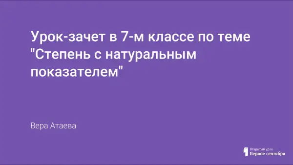 Представлен конспект урока-зачета по теме: "Степень с натуральным показателем" для учащихся 7-го класса.