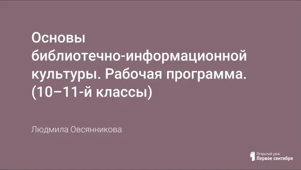 Основы библиотечно-информационной культуры. Рабочая программа. (10–11-й классы)