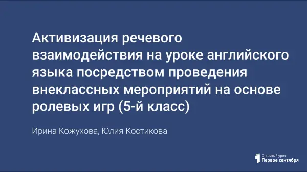 Проведение внеклассных мероприятий способствуют активизации речевого взаимодействия на уроке иностранного языка. Положительный результат при проведении мероприятий оказывает ролевая игра, в частности, инсценировка, как один из ее видов. Она эффективна, повышает мотивацию к изучению иностранного языка, обладает большими возможностями мотивационно-побудительного плана и имеет образовательное значение. Ролевая игра обладает образовательными воспитательными возможностями, является основой для проведения мероприятий.