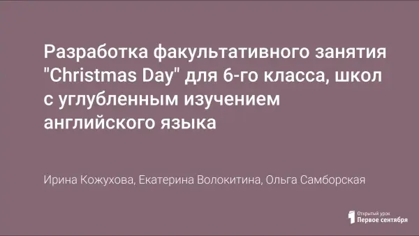 Разработка факультативного занятия "Christmas Day" для 6-го класса, школ с углубленным изучением английского языка