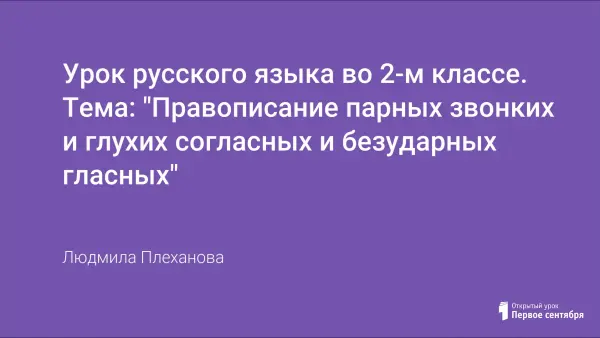 Представлен конспенкт урока русского языка во 2-м классе по теме: "Правописание парных звонких и глухих согласных и безударных гласных".