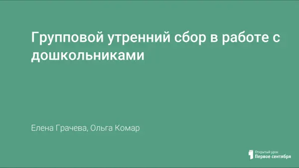 Если в традиции дошкольного учреждения входит утренний сбор, он становится любимым "ритуалом" и для детей и для взрослых. Дети, приходя в детский сад утром, имеют право сами выбрать, где, с кем и чем они хотели бы заниматься; они быстро привыкают к такой форме работы, хотя на первых порах далеко не всем бывает легко прислушаться к себе и понять собственные потребности. Возможность такой ежедневной тренировки навыка выбора способствует воспитанию самостоятельности, учит детей планировать свою деятельность. Утренний сбор предназначен, прежде всего, для того, чтобы обеспечить возможность конструктивного межличностного и познавательно-делового общения детей и взрослых.