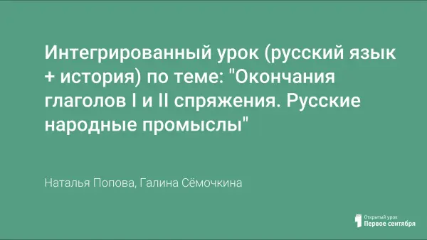 Интегрированный урок (русский язык + история) по теме: "Окончания глаголов I и II спряжения. Русские народные промыслы"
