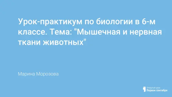 Урок-практикум посвящён закреплению знаний об особенностях строения и функций нервной и мышечной тканей животных. Для активизации познавательного интереса в начале урока учащимся предлагается стать сотрудниками школьной лаборатории. В ходе урока определяются степень владения учащихся теоретическим материалом по теме, сформированность у них необходимых умений и навыков. Наиболее активные ребята получают от одноклассников рекомендательные письма на имя директора лаборатории.