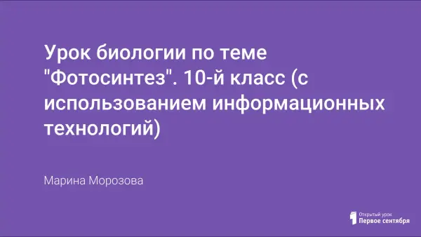 Урок посвящён детальному изучению механизма и химизма процесса фотосинтеза в курсе биологии 10-го класса. Для актуализации прежних знаний по данной теме в начале урока приводится рассказ об опытах, поставленных учёными, и демонстрируются результаты ряда экспериментов по физиологии растений. Урок отличается выраженной экологической направленностью.
