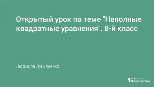 На уроке учащиеся знакомятся с определением квадратного уравнения и изучают