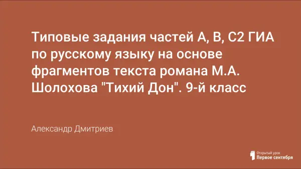В подготовке учащихся 9-х классов к Государственной итоговой аттестации учителя используют множество текстов, находящихся в свободном доступе и представляющих себой отрывки художественных произведений писателей-классиков. Предложены варианты контрольно-измерительных материалов для подготовки к ГИА по русскому языку на основе фрагментов текста романа М.А. Шолохова "Тихий Дон".