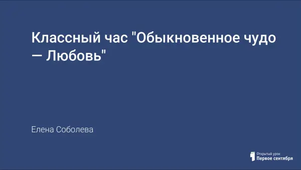 Классный час в 9-м классе начинается с инсценировки пьесы Е.Шварца «Обыкновенное чудо». Цель классного часа - разговор о любви как наивысшей ценности человека.