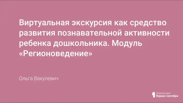 Информационные технологии в образовательном процессе с детьми дошкольного возраста совершенствуют способы и средства организации детской деятельности, обеспечивают всестороннее развитие личности ребёнка-дошкольника, а также готовят его к жизни в информационном обществе. Поэтому использование интерактивных технологий является эффективным средством развития познавательных интересов современных дошкольников. В работе по краеведению активно используются экскурсии. Однако зачастую проведение экскурсии затруднено в связи с погодными условиями или труднодоступностью местонахождения объектов наблюдения. Безграничный познавательный интерес современного дошкольника успешно реализуется через организацию виртуальных экскурсий.