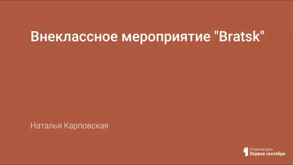 Целями и задачами внеклассного мероприятия о Братске являются: поддержка интереса и мотивации учащихся к изучению иностранного языка; раскрытие интеллектуального потенциала учащихся; формирование социокультурной компетенции, воспитание патриотизма и гражданской позиции.