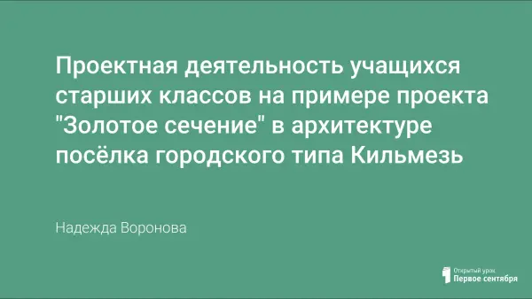 Проект – это творчество ученика, учитель лишь координирует работу. Сначала ученик формулирует тему, цели, задачи, гипотезу проекта, составляет план. На этом этапе учитель мотивирует ученика. Далее учащийся собирает информацию, учитель помогает ее подобрать. Затем ученик отбирает объекты архитектуры по критериям золотого сечения, анализирует эти данные, учитель консультирует. Ученик оформляет работу в виде проекта и презентации, защищается.