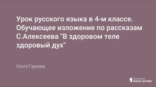 Урок по развитию речи – это обучающее изложение по рассказу С.Алексеева «В здоровом теле – здоровый дух». На уроке реализуются образовательные, развивающие и воспитательные цели, используются здоровьесберегающие технологии. Достигнуть целей урока мне помогли принципы программы «Школа-2100».