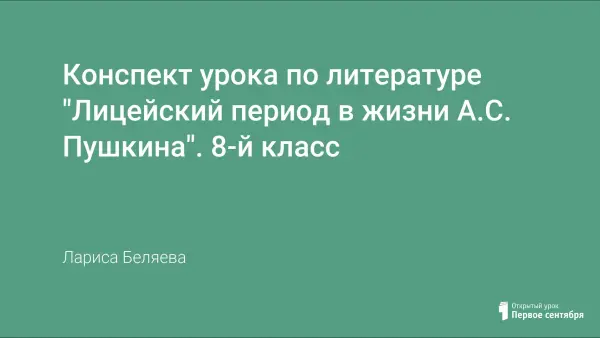Данный урок помогает систематизировать знания учащихся по теме "Лицейский период в жизни А.С. Пушкина".