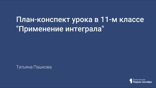 Целью урока является знакомство учащихся с широким спектром применения интеграла, а так же организация самостоятельной работы в процессе обучения математике. Самостоятельная деятельность учащихся включает в себя не только проверочные работы по контролю за знаниями, но и работу с книгой, подготовку докладов, рефератов, техническое моделирование, конструирование и т.п. Все это способствует развитию творческой, поисковой, исследовательской деятельности учащихся.