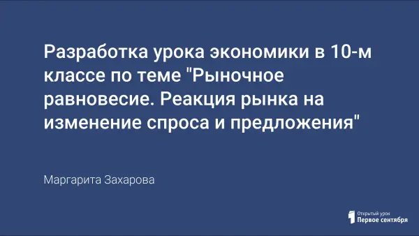 Разработка урока экономики в 10-м классе по теме "Рыночное равновесие. Реакция рынка на изменение спроса и предложения"