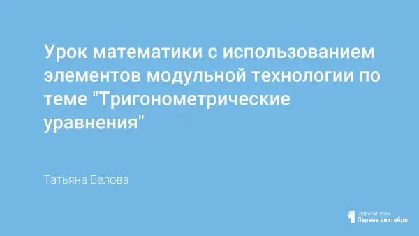 В данной статье приведен урок математики, на котором изучается решение тригонометрических уравнений. В конспекте урока показано, как можно в обучении математике объединить традиционные методы и элементы модульной технологии.
