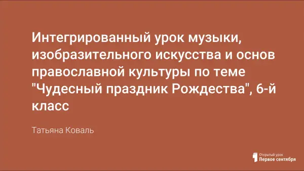 Интегрированный урок "Чудесный праздник Рождества" предполагает применение учителем технологии Л.В. Горюновой "Педагогика искусства". Урок проводится на последней неделе первого полугодия в 6-м классе, в нем затрагиваются такие понятия, как доброта, взаимопонимание, любовь, верность и преданность, что по-прежнему актуально в нашем стремительном мире.