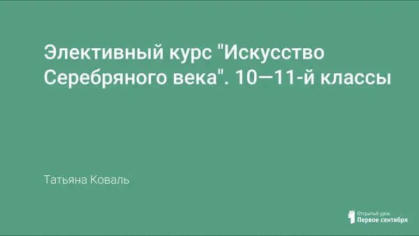 Элективный курс "Искусство Серебряного века". 10—11-й классы