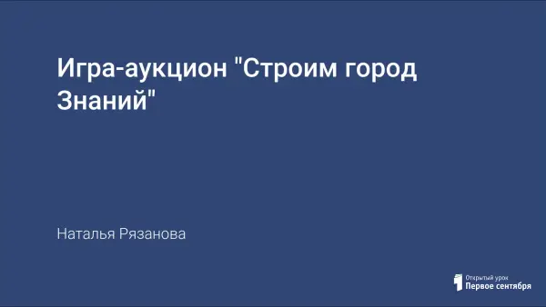 Игра-аукцион "Строим город Знаний" проводится в III четверти 4-го класса. Она позволяет в игровой форме повторить знания из разных областей по курсу начальной школы, проверить умения учащихся воспринимать учебную задачу, выполнять её, проверять выполненное, оценивать себя.