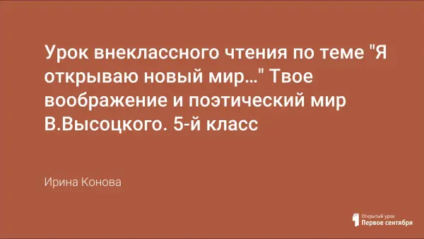 Урок внеклассного чтения знакомит со стихотворениями Владимира Высоцкого. В 2013 году поэту исполнилось бы 75 лет. Урок проводился в январские дни после изучения темы «Романтика неизведанного» по программе Р.Н. Бунеева, Е.В. Бунеевой. Участники творческой группы составили к занятию сборник стихотворений поэта. В уроке задействованы участники клуба любителей авторской песни, учащиеся.