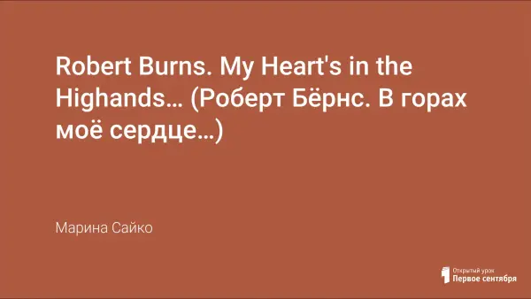 Приобщая учащихся к традициям и культурному наследию англоговорящих стран, ни один учитель английского языка не может пройти мимо творчества шотландского поэта Роберта Бёрнса. Его стихи – просты и лиричны, необычайно музыкальны. Многие ученики, именно на наших уроках, с удивлением узнают, что в российских фильмах «Служебный роман», «Здравствуйте, я ваша тётя» звучат песни на его стихи.
