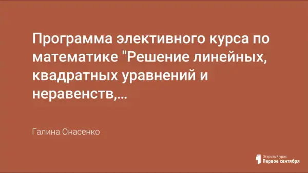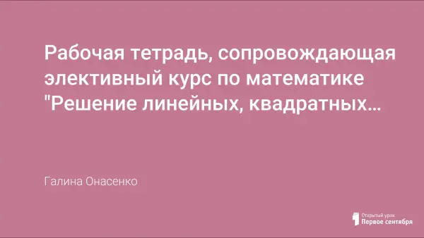 Целью работы является разработка рабочей тетради по алгебре, сопровождающая элективный курс по математике «Решение линейных, квадратных уравнений и неравенств с параметрами» для учащихся 8–9-х классов в рамках предпрофильной подготовки.