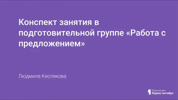 Представлен конспект занятия в подготовительной группе по теме «Работа с предложением».