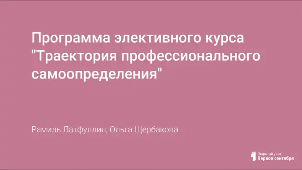 Элективный курс "Траектория профессионального самоопределения" предназначен для оказания психолого-педагогической поддержки учащимся 9-х классов в выборе профиля обучения в рамках предпрофильной подготовки.