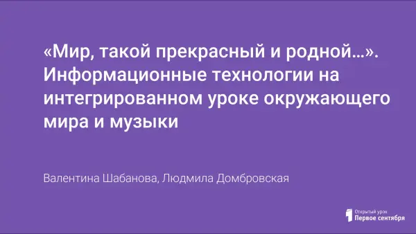 «Мир, такой прекрасный и родной…». Информационные технологии на интегрированном уроке окружающего мира и музыки