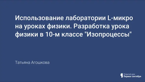Урок изучения нового материала с применением лаборатории L-микро. Урок активизирует знания учащихся. Применение лаборатории L-микро позволяет продемонстрировать изопроцессы в газах и провести обработку полученных данных с построением графиков.