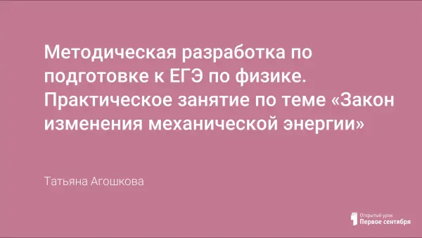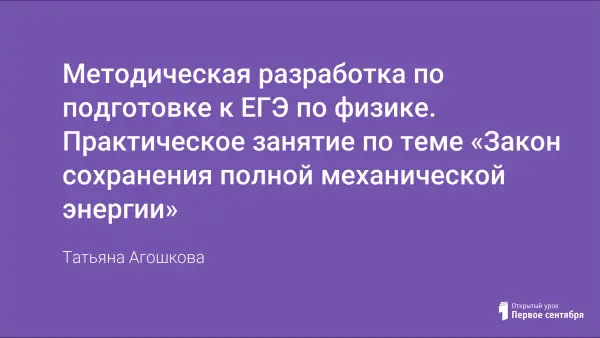 Практическое занятие по теме «Закон сохранения полной механической энергии» нацелено на подготовку учащихся к сдаче ЕГЭ по физике. Данная методическая разработка представляет собой презентацию, в которой представлен теоретический материал по данной теме и подобраны задачи с полным решением, таким образом, что к концу занятия у учащихся должен четко выработаться способ действий, т.е. алгоритм решения задач на закон сохранения энергии.