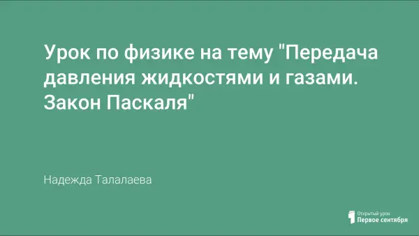На изучение темы "Давление" по программе отведено 23 часа. Место данного урока в системе знаний № 4. Этот урок рассчитан на класс, обучающийся по учебнику А.В. Перышкина, при 2-х часовой нагрузке. Урок проводился с целью познакомить с законом Паскаля, расширить и углубить знания учащихся по теме "Давление", помочь учащимся осмыслить практическую значимость заданной темы. Важным звеном урока являлась экспериментальная деятельность, включающая умения обнаруживать и исследовать факты, лежащие в основе законов и теории.