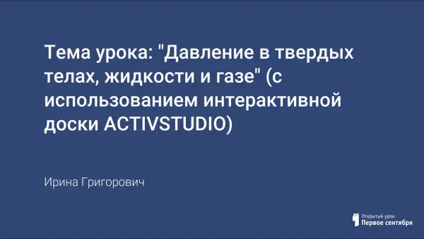 В представленной статье дан материал урока для 7-го класса по теме "Давление в твердом теле, жидкости, газе" с применением современного интерактивного оборудования - интерактивной доски ACTIV studio. Материал открывается только для этого обеспечения: ACTIV studio, что позволяет активизировать работу на уроке.