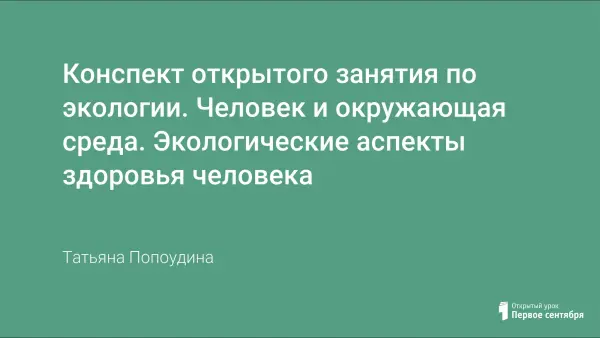 Конспект открытого занятия по экологии. Человек и окружающая среда. Экологические аспекты здоровья человека