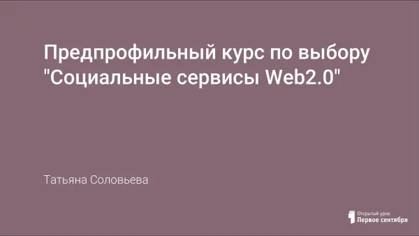 Элективный курс "Социальные сервисы Web 2.0" позволяет познакомить учащихся с принципами работы с сервисами Web 2.0, что способствует развитию ключевых компетентностей. Реализация программы курса предполагает активное участие школьников в телекоммуникационных проектах, в исследовательской деятельности по выбранному профилю, с целью расширения их знаний и более глубокого усвоения учебного материала.