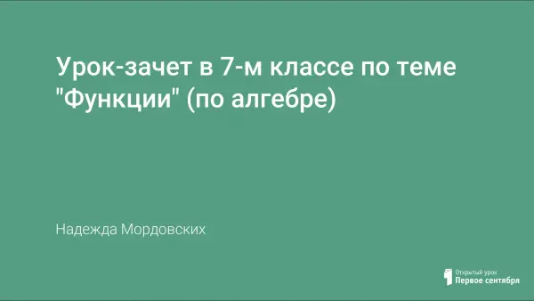 Урок-зачет по теме «Функции» разработан с целью повторения, закрепления и проверки знаний и умений учащихся. На уроке используются как индивидуальные, так и групповые формы работы.