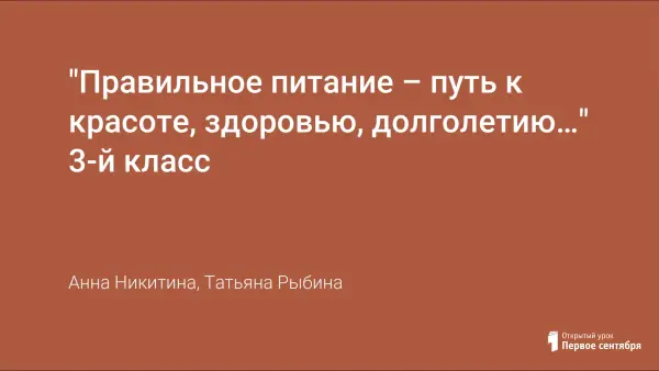 "Правильное питание – путь к красоте, здоровью, долголетию…" 3-й класс
