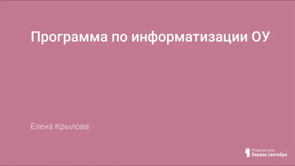 В статье представлена программа информатизации МОУ СОШ № 11, где отражены цели программы, задачи, проекты реализации, дан анализ текущего состояния информатизации МОУ СОШ № 11 г. Серова Свердловской области.