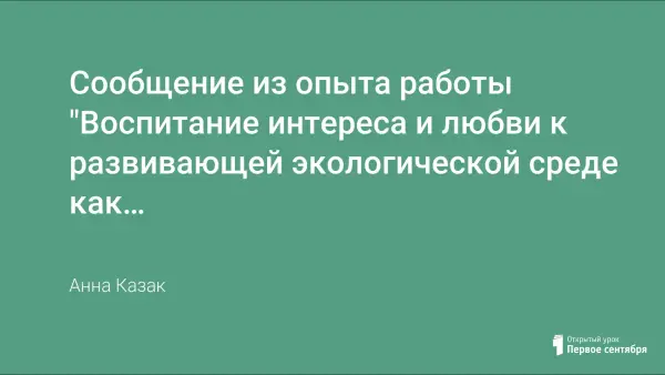 В наши, дни когда мир находится на грани катастрофы и под угрозой будущее всего человечества ни один здравомыслящий человек не станет отрицать, что экологическое воспитание и образование является одной из актуальнейших проблем современности. Мир вступил в XXI век. Каким он будет? Во многом это зависит от нас и от тех основ, которые мы заложим в сознание сегодняшних малышей.