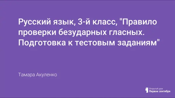Урок русского языка в 3-м классе посвящен подготовке к тестовым заданиям. Цели: развивать умение распознавать безударные гласные в корне слова, осознавать структуру слова, позволяющую глубже понять его лексическое значение; уточнить знания учащихся об особенностях проверочных слов и способах проверки.