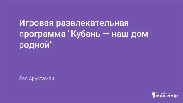 Цель мероприятия: формировать у детей знания о культуре Кубанского народа, его обычаях, познакомить с произведениями песенного фольклора, частушками; воспитывать уважение к духовному богатству и мудрости русского народа. Для подготовки данного мероприятия учитываются возрастные особенности детей 8–12 лет. В основе сценария использована познавательно-игровая форма деятельности детей.