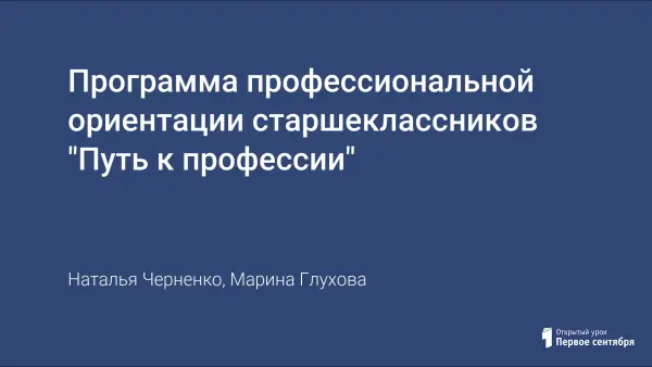 Программа профессиональной ориентации старшеклассников "Путь к профессии"