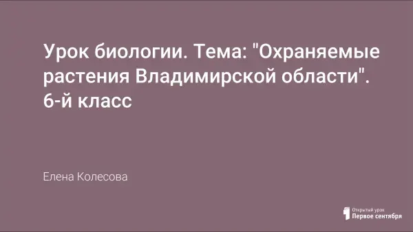 Урок биологии напоминает учащимся о Красной книге, необходимости бережного отношения к растениям, знакомит с редкими охраняемыми растениями Владимирской области, развивает экологическую культуру учащихся, бережному обращению с окружающей средой. На уроке используются игровые моменты, презентация, что делает возможным использование материала и во внеклассной работе.