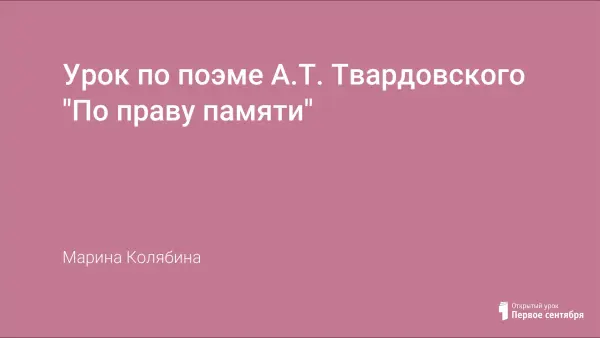 Произведения, пришедшие в 80-е годы, многое открывают в нашем понимании истории. Глубокий анализ поэмы А.Т. Твардовского «По праву памяти» помогает учителю решить не только обучающие задачи, но и воспитательные. Лирический герой поэмы, за которым встает образ автора, учит милосердию, высокой нравственности, гражданственности.