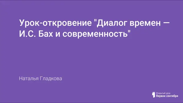 Урок-откровение по теме "Диалог времен - И.С.Бах и современность" в 7-м классе имеет место в системе уроков по Программе Д.Б. Кабалевского, а так же авторского элективного курса "Симбирск-Ульяновск музыкальный". Воспитание потребности учащихся в духовном совершенствовании, формирование устойчивого интереса к региональной культуре, сотворчество на уроке и деятельностный подход в обучении - вот та педагогическая идея, на которой построен урок.