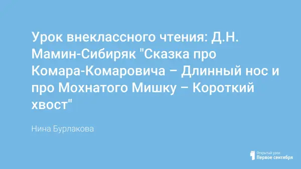 Урок в 4-м классе по системе развивающего обучения Л.В. Занкова предназначен для внеклассного чтения. Цель урока: познакомить детей с творчеством и биографией писателя Д.Н. Мамина-Сибиряка, развивать речь; умение на слух воспринимать информацию, развивать слуховую память; отрабатывать навыки чтения; воспитывать интерес к детской литературе; воспитывать умение слушать друг друга.