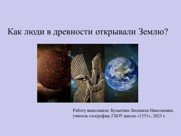 Данная презентация дает возможность составить представление учащихся 5–6-х классов о том, что знали древние о нашем мире, как шло накопление знаний о Земле.
