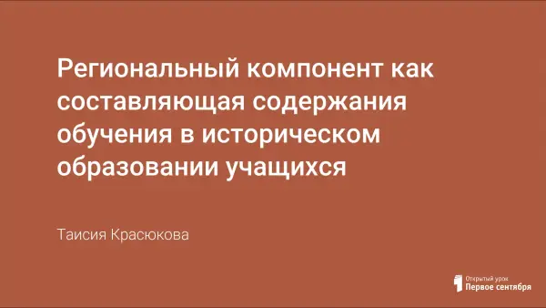 Cоставляющая исторического образования сегодня - региональный компонент.