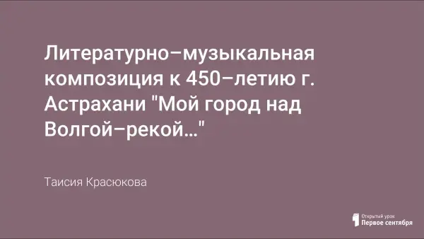 Статья представляет собой литературно-музыкальную композицию к 450-летию города Астрахани.