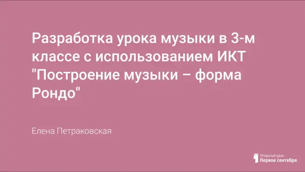 Разработка урока музыки в 3-м классе с использованием информационных компьютерных технологий поможет учителю углубить и закрепить знания детей по теме «Формы музыки». Представленные материалы и задания способствуют развитию восприятия, памяти, внимания учащихся, а также исполнительских и творческих навыков.